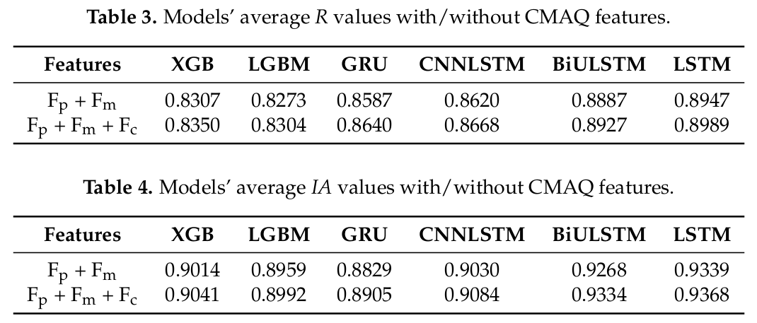 전체적으로 CMAQ를 사용했을 때 더 좋긴 하지만 너무 근소하게 좋음. 단순히 LSTM을 적용했을 때 가장 좋음.