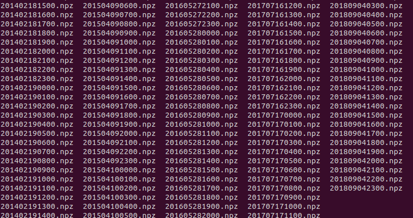 위와 같은 작업으로 각 시간 별로 npz파일 저장. 한 npz파일 당 약 256KB.